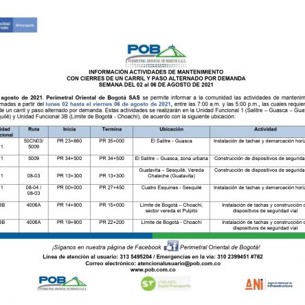 Perimetral Oriental de Bogotá EEFF 2020-2019