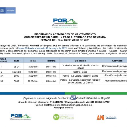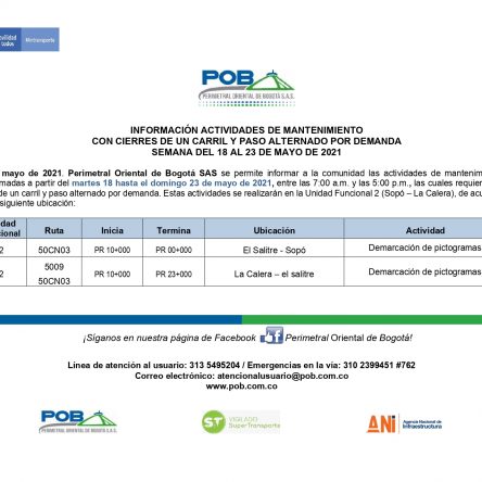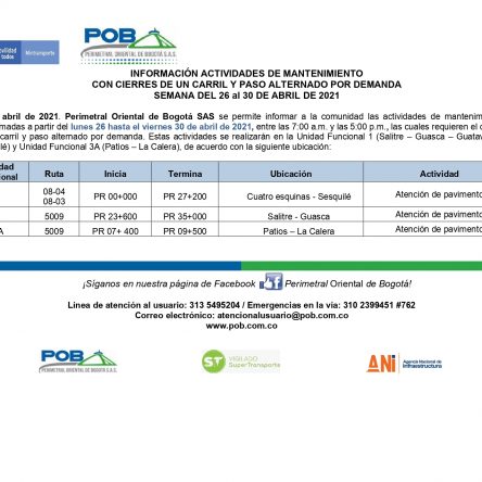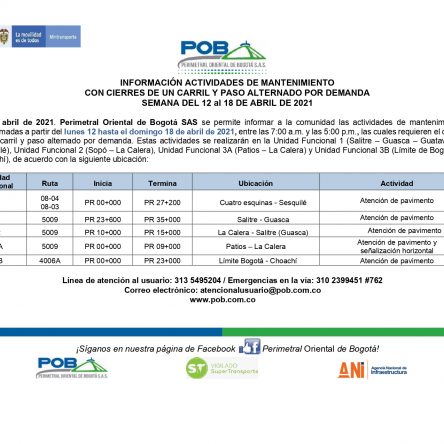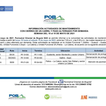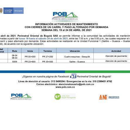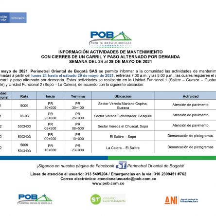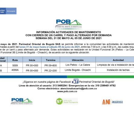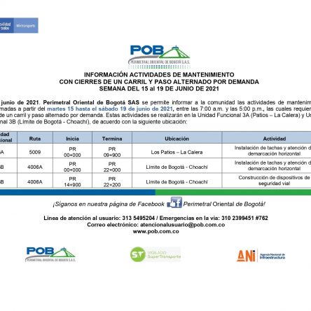 Programación cierres 15 al 19 de junio de 2021
