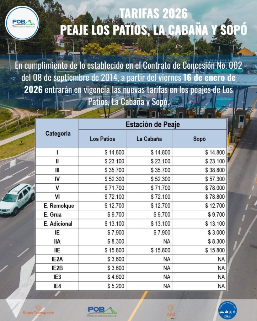 Consulte aquí la Resolución -20233040041285-22-09-2023 Tarifas Diferenciales Peaje Los Patios y el comunicado ANI No. 20233060351611 del 28-09-2023, Requisitos para acreditar la calidad de beneficiario, procedimiento para acceder al beneficio, mecanismos de otorgamiento, reemplazo, control y causales de pérdida del beneficio de las tarifas diferenciales en el Peaje los Patios